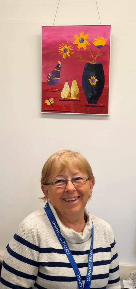 Totnes Caring’s dementia co-ordinator, Mary Garvey, enthused: “It was such a wonderful surprise to see these gorgeous pictures appear in our office. It has really brightened up the place and added a cheerful touch of colour. We are all very pleased.