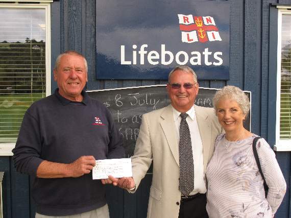 David and his wife Sue came to the lifeboat station to present the cheque to Rob Clements, Dart lifeboat operations manager, while they were on holiday in the area.