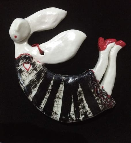 Amongst a vibrant range of fairground themed original silk screenprints and collographs, Teresa is showcasing a new range of boxed porcelain angels to dress Christmas trees or to use as wall hangings.