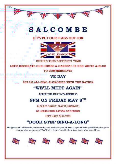 Town and parish councils around the South Hams are asking people to decorate their homes and gardens in red, white and blue, and then join their neighbours singing ’we’ll meet again’ after the Queen’s address on Friday, May 8.