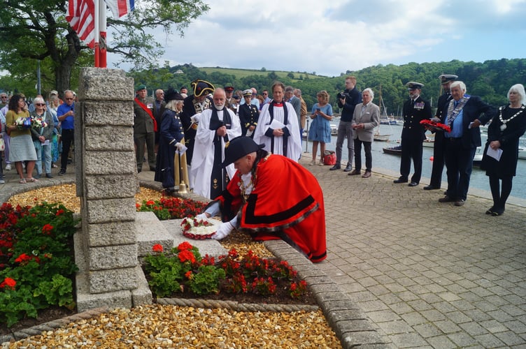 Mayor of Dartmouth Cllr David Wells lays a wreath. Photo Karen Perrow (Karen Perrow)