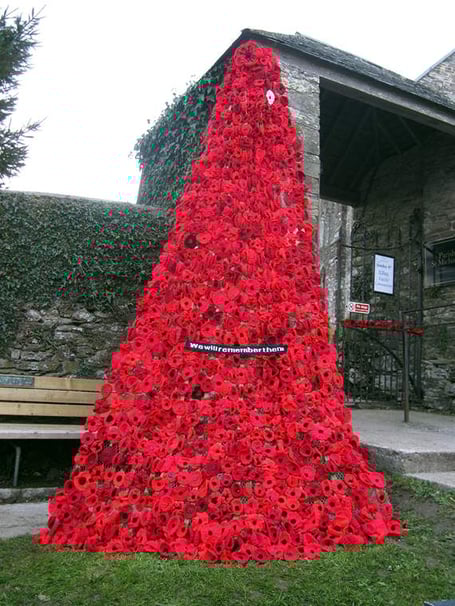 In Blackawton to commemorate the centenary of the ending of the First World War, a small group of 42 committed individuals took on the task of knitting and crocheting poppies. Family and friends from as far as Cornwall, Bath and Essex also helped complete the challenge.