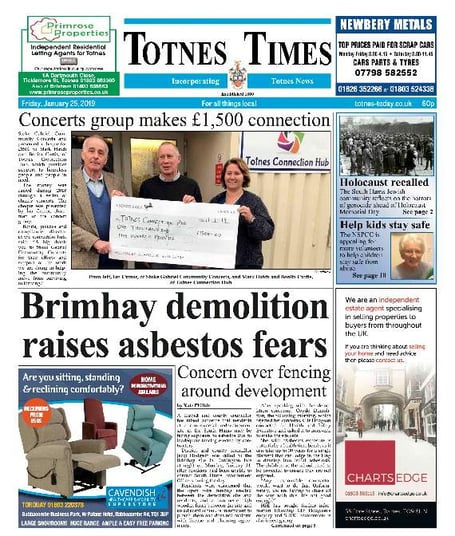 In this week’s Totnes Times, we lead on a story about a district and county councillor raising concerns about a controversial site in the South Hams that could be exposing residents to asbestos.