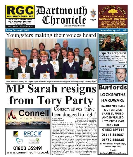 This week in the Dartmouth Chronicle we lead on our local MP, Dr Sarah Wollaston, resigning from her party because it has moved too far to the right.