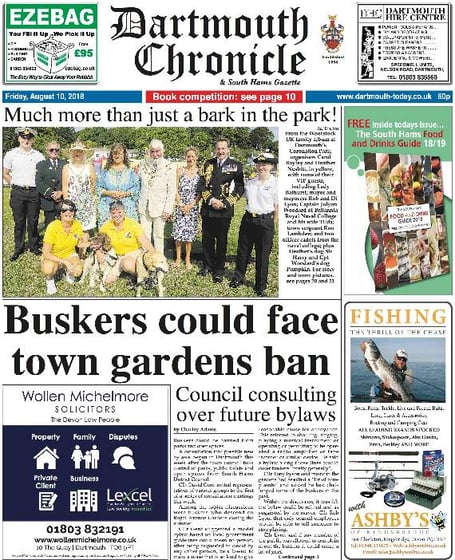 Our main picture shows last weekend’s Woofstock UK dog festival organisers with some of the VIPs who came along to enjoy the day on Dartmouth’s Coronation Park.