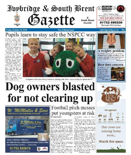This week the Ivybridge & South Brent Gazette leads on a story about dog owners being accused of putting the health of others at risk by allowing their pets to foul on football pitches.