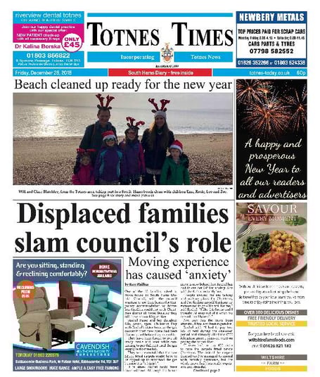 In this week’s Totnes Times, we lead on a story about one of the 10 families asked to move house by South Hams District Council because it wanted to use their homes for temporary accommodation for homeless families. But this particular family said it has given them 'anxiety' because they weren’t able to cook Christmas dinner at home because they still didn’t have a working cooker.