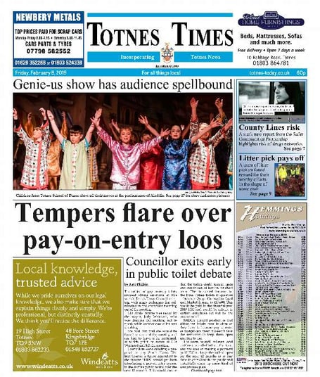 This week we lead on news of an argument over the decision over whether or not to pay SHDC to prevent pay-on-entry on toilets.