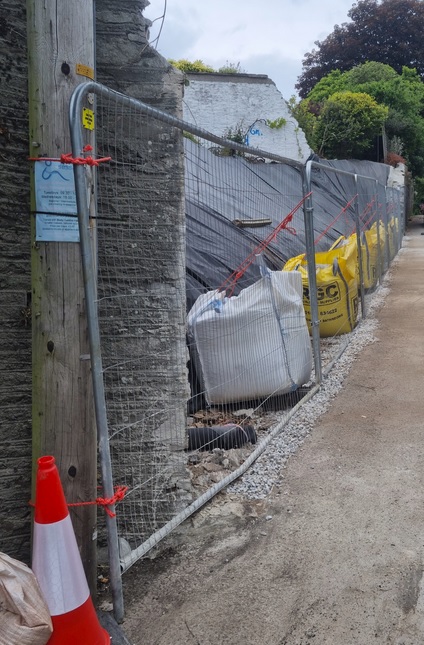 It has been authorised by the Devon County Council Highways department to rebuild a high stone wall in the centre of the village that had to be taken down a year ago, because it was considered unsafe.