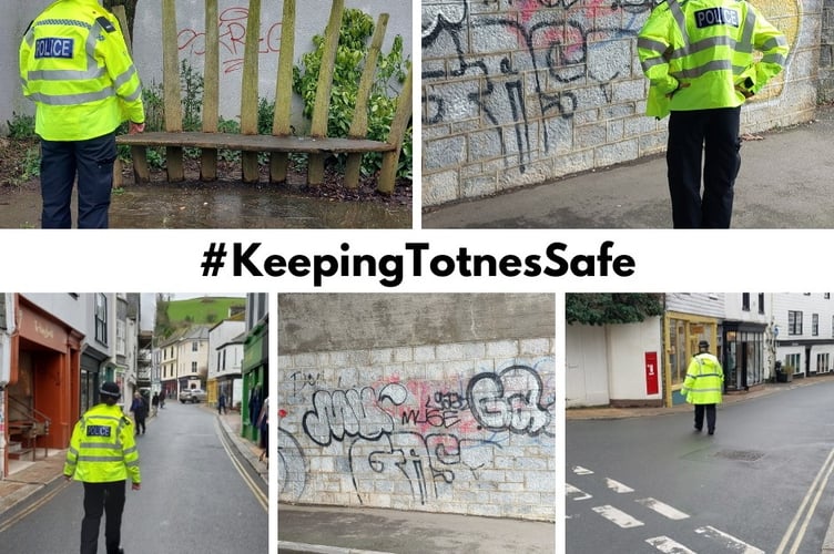 Totnes Police officers have been stepping up their foot patrols through the town centre after some concerns from the local community about the raise in graffiti, people drinking in the street and beggars in the area.