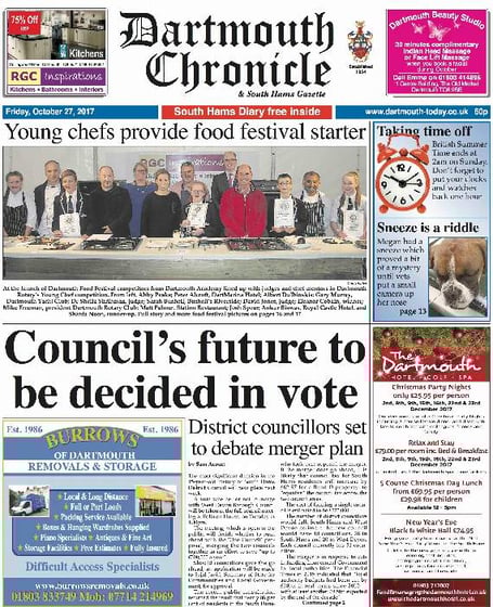 We lead on a story looking ahead to next week’s South Hams District Council meeting which will decide whether to press ahead with the ’One Council’ proposal which advocates a merger with West Devon Borough Council.