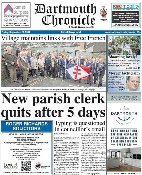 We lead on the surprise resignation of Kingswear Parish Council’s clerk – just five days into the job.