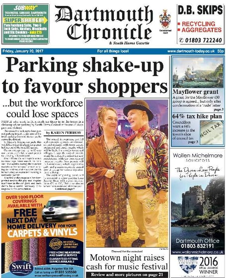 We lead on a story about proposals to reduce permit parking in Dartmouth’s Mayor’s Avenue car park to encourage more shoppers and short-stay visitors.