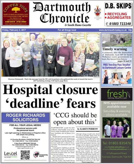 FEARS escalate over whether new facilities will be open in Dartmouth before hospital closes, the Tourist Information Centre and its partners launch Discover Dartmouth, all our coverage of the centenary of the Hallsands disaster and much, much more...