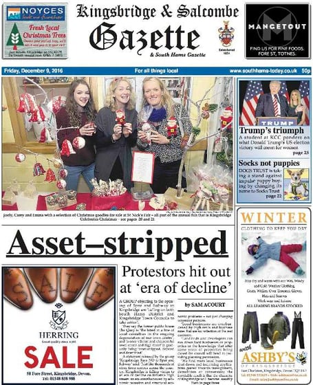 A GROUP has formed to object to the new Spar and Subway planned for The Quay pub in Kingsbridge, all the news from Kingsbridge Celebrates Christmas, Kingsbridge Community College’s Academy Pages - written by students - are in this week, The Dogs Trust reminds us that a dog is for life, not just for Christmas and much, much more...