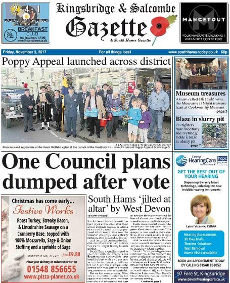 This week we lead on the news that the proposal to join South Hams District Council and West Devon Borough Council was rejected, despite South Hams Councillors voting in favour of the merger.