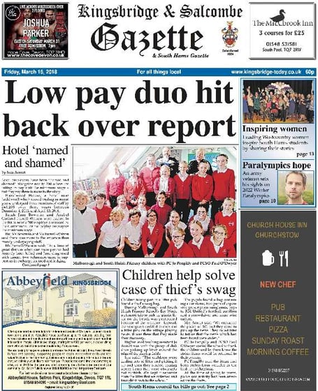 We lead on news that the owners of a former hotel near Kingsbridge have defended themselves after they were "named and shamed" by the Government for paying staff below the minimum wage.