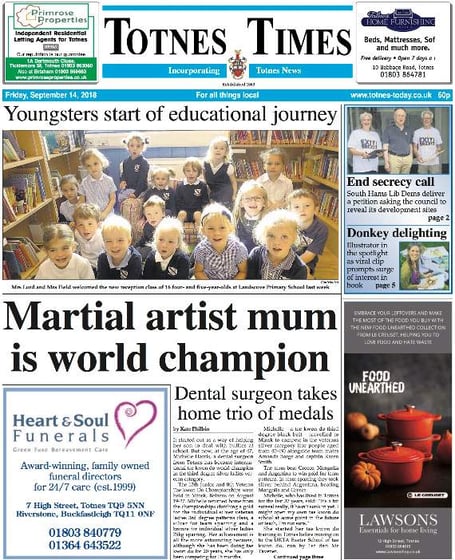 This week we lead on a story about a mum who has become international tae kwon do world champion in the third degree silver ladies veteran category.
